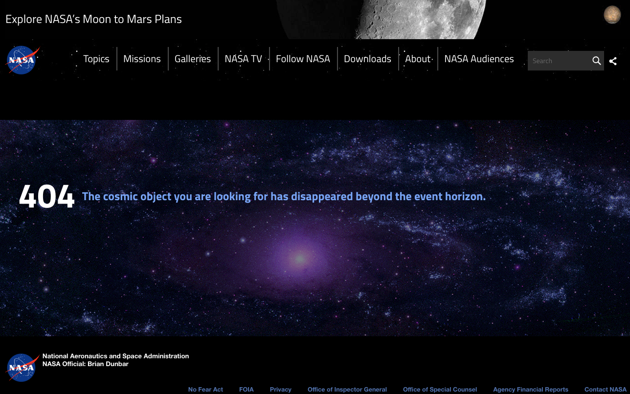 "404 The Cosmic object you are looking for has disappeared beyond the event horizon."