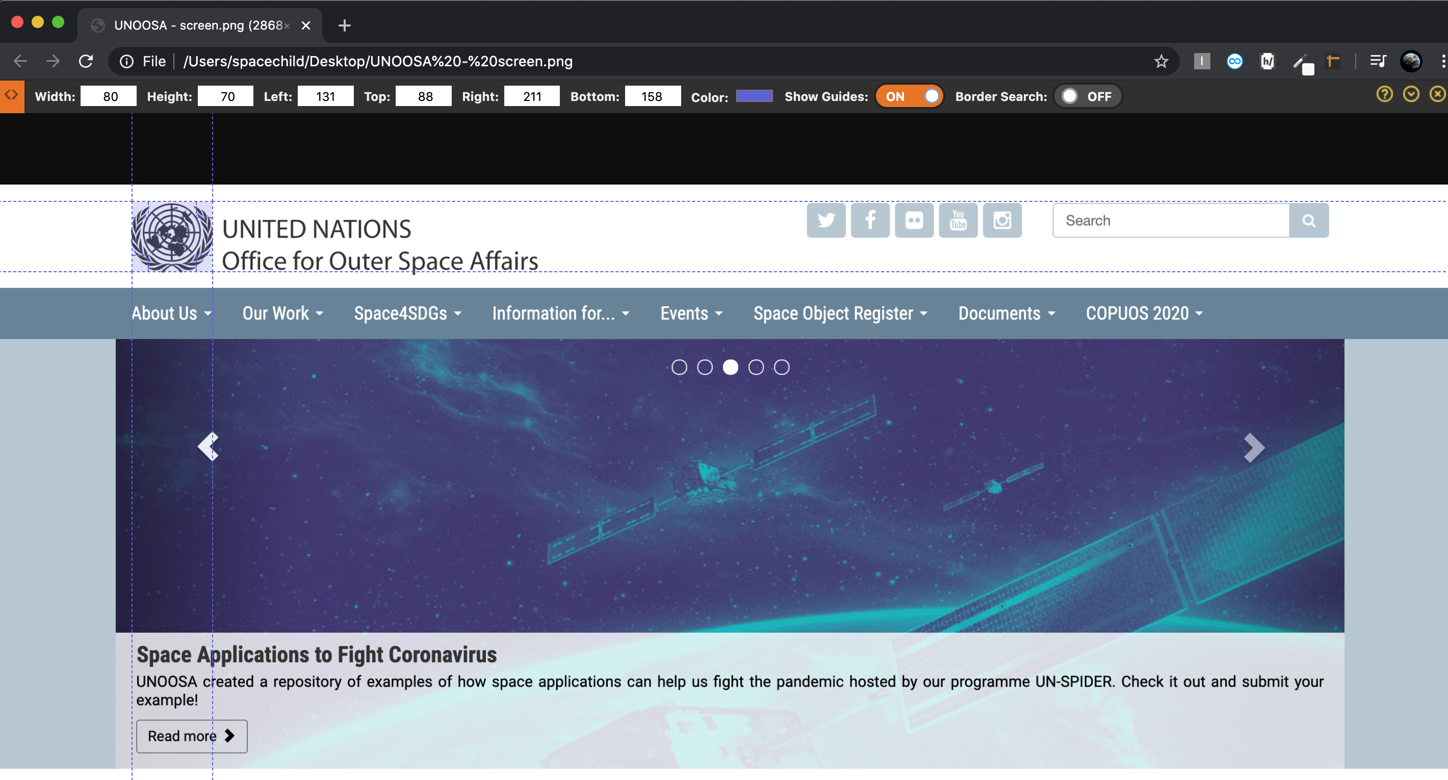 웹 페이지 상에서 각 요소들 간의 각격이나 크기를 픽셀단위로 측정해줍니다.