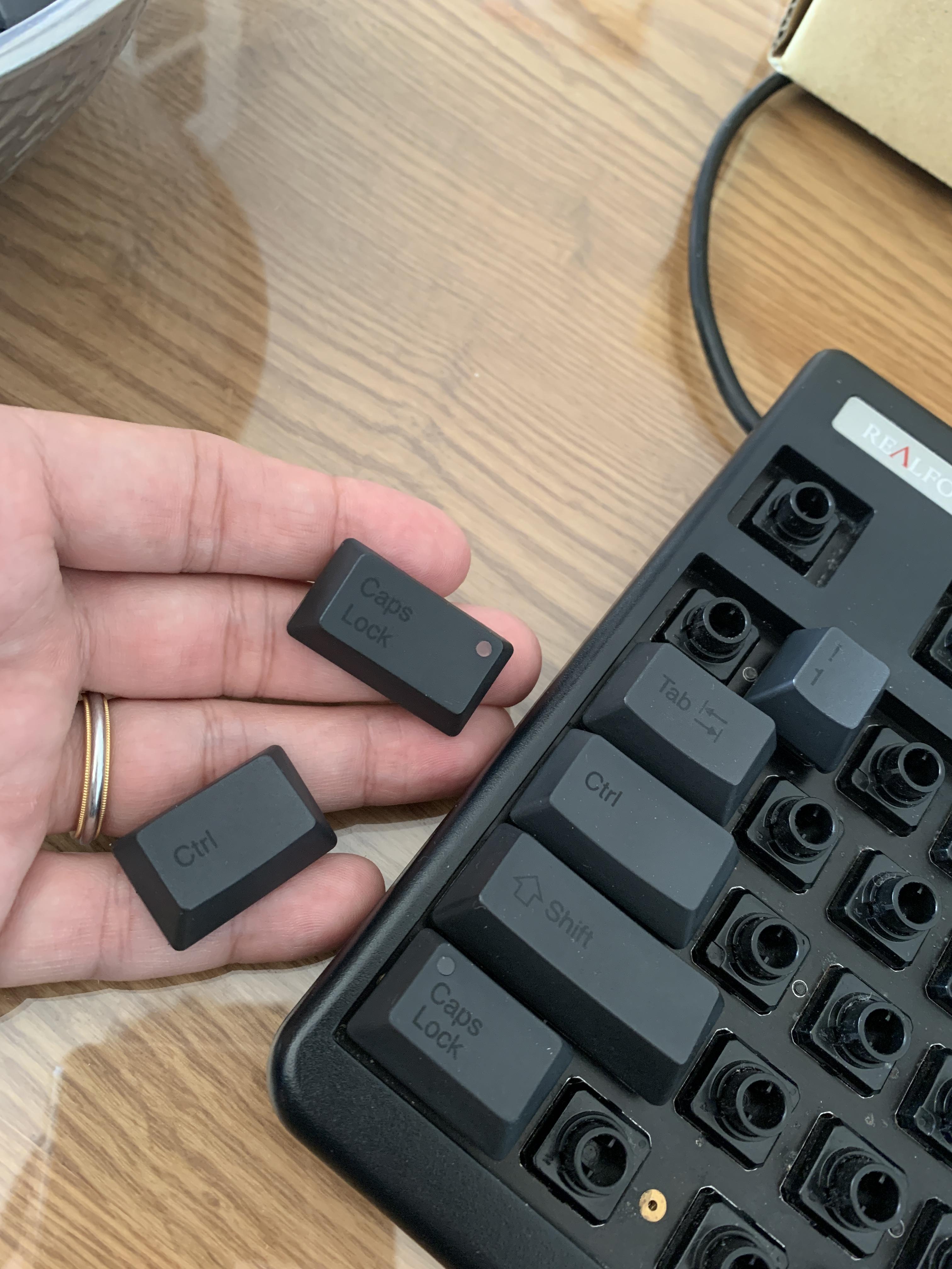 이번에 청소하면서 1번 DIP스위치를 On 해서 컨트롤키와 캡스락 키를 바꿔줘 봤습니다.