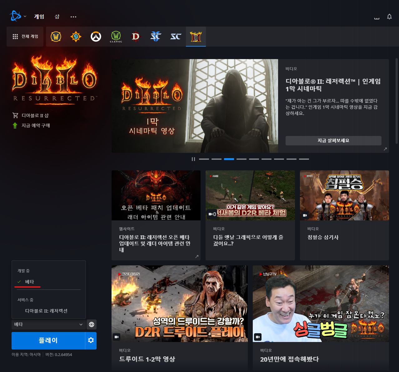 디아블로2 레저렉션(베타) 다운로드 방법입니다. (맥에서는 플레이가 불가합니다.)