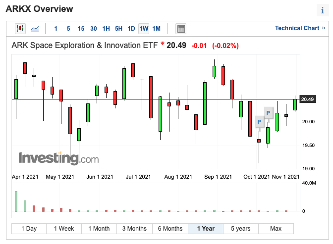 그리고 이 ARKX ETF는 그 말이 사실임을 그래프로 보여주고 있네요.
