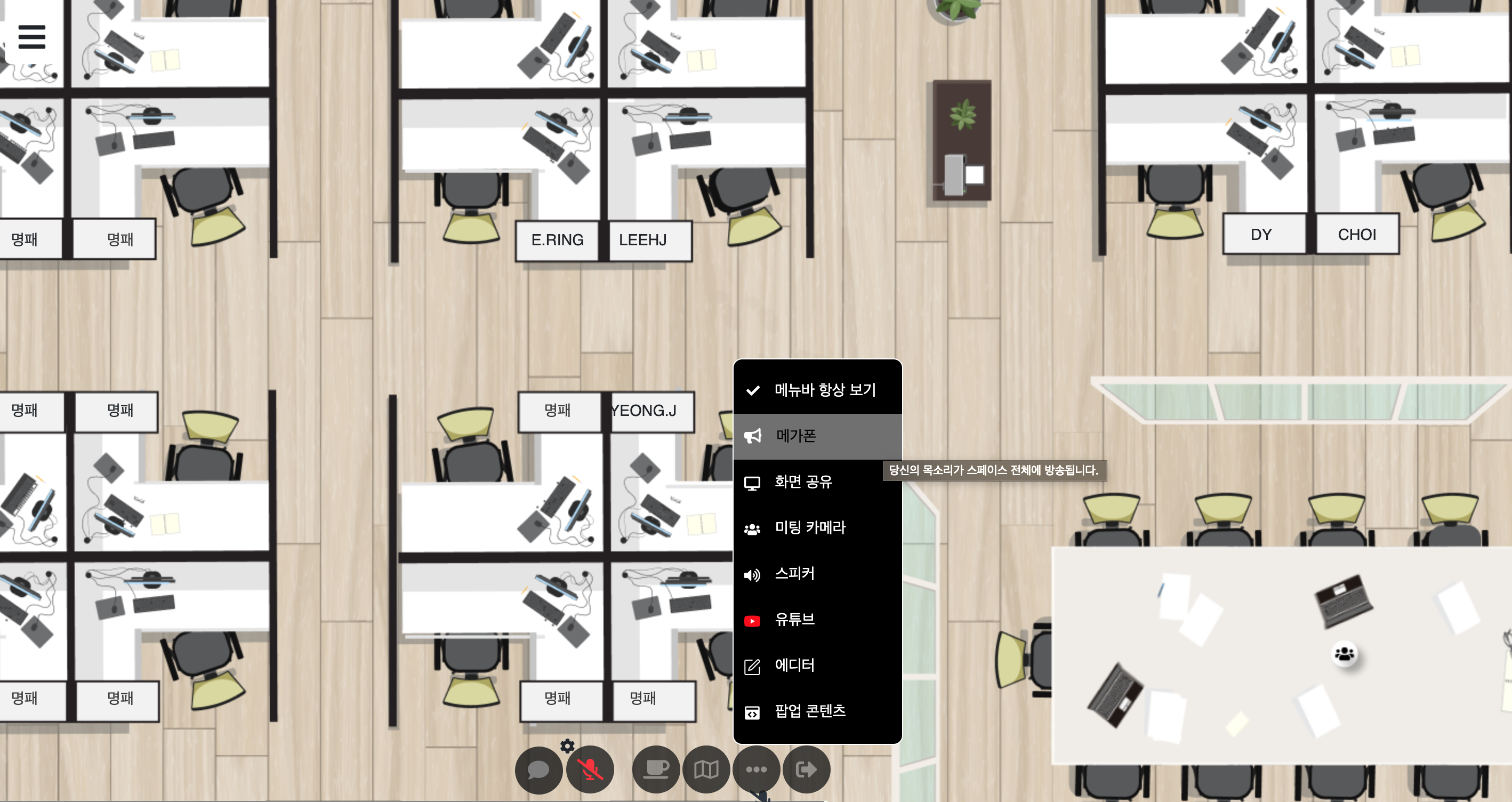 임대해서 쓰고 있는 메타버스 사무실 전체에 전달되는 음성입니다.