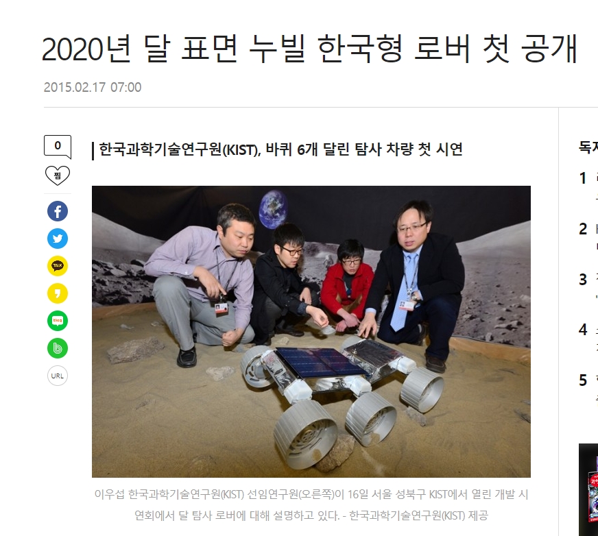 이 로버는 심지어 KIST 자체 예산 5억을 투입하여 만들었다고...