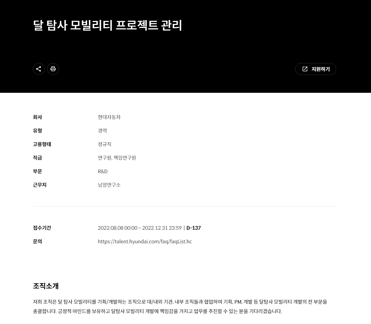 그런데, 2주가 채 지나지 않아, '달 탐사 모빌리티 프로젝트' 관련 인재 채용 뉴스가 떴습니다.
