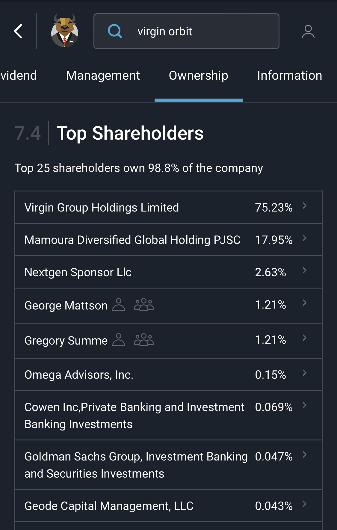 그리고 이 버진 오빗의 탑 쉐어홀더는 버진 그룹.