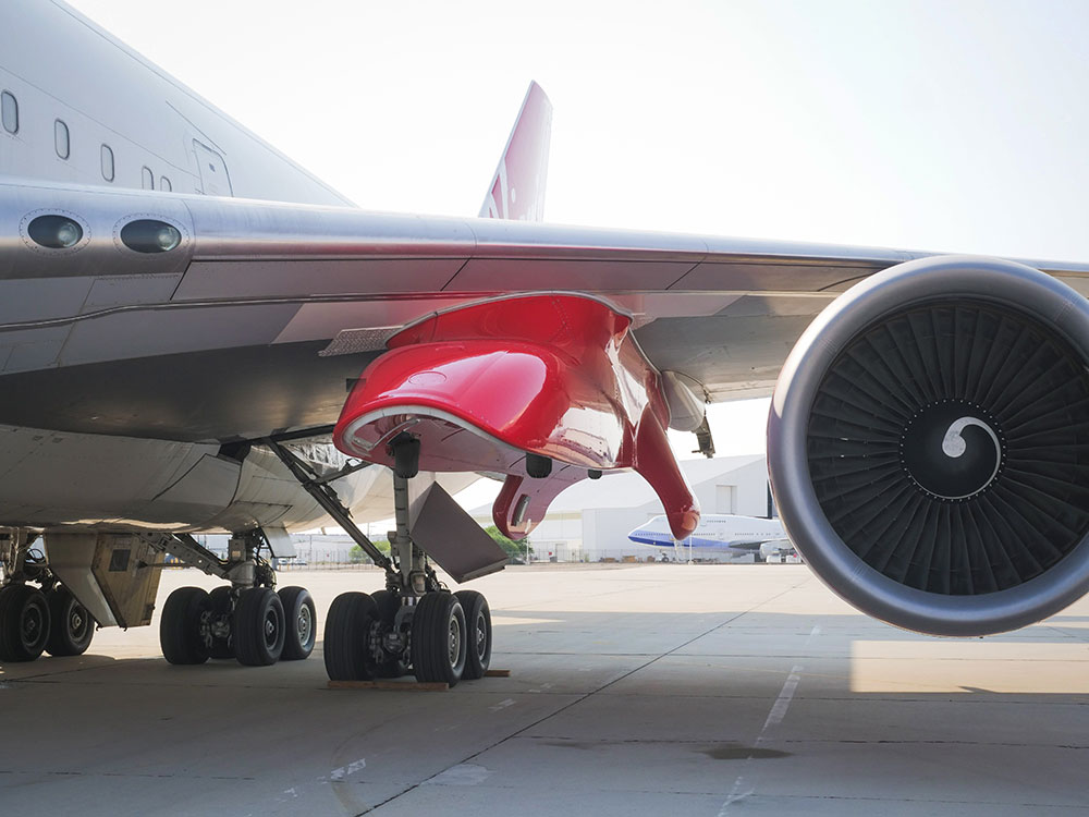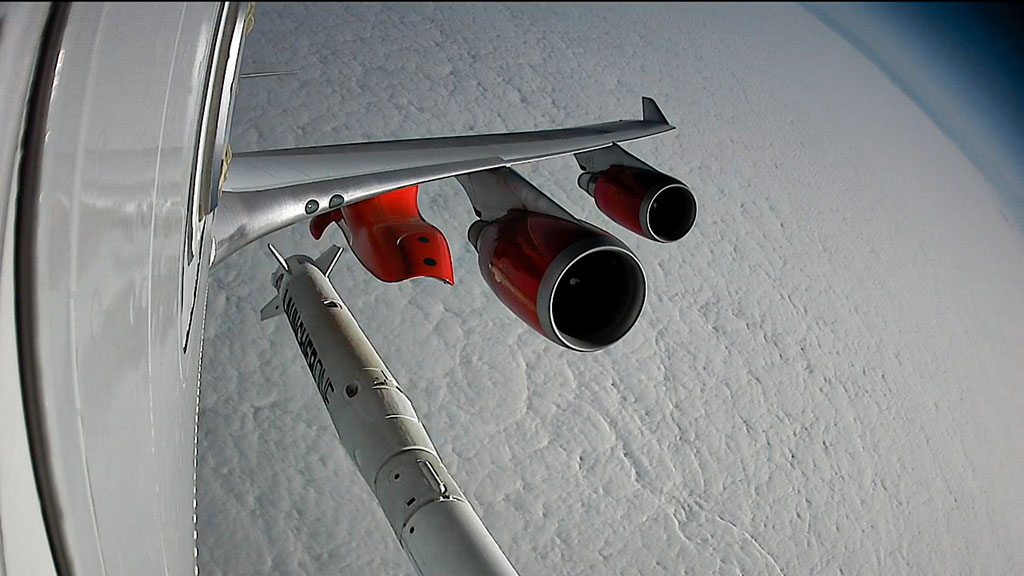 보잉 747 기체를 개조해서 날개 밑에 “런처 원”이라는 로켓을 장착할 수 있는 브라켓이 마련되어 있습니다.