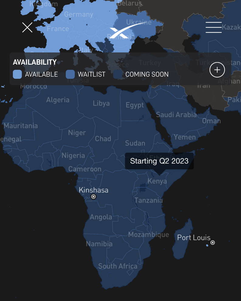 한편, 스타링크는 2023년부터 아프리카 대륙에도 본격적으로 서비스를 시작하려고 하고 있습니다.