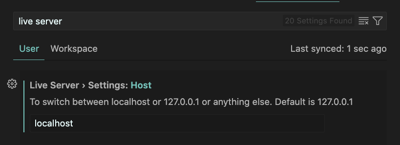 2. VSCode - Live Server Host 설정을 개인 IP에서 local 호스트로 바꿔주기