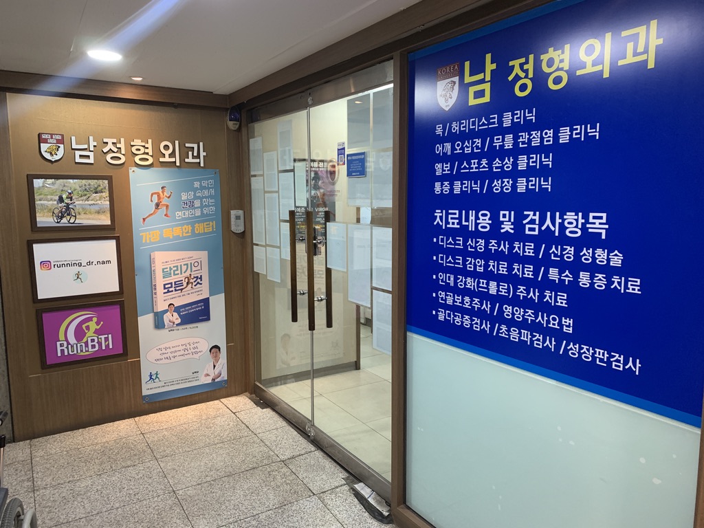 여기는 달리기를 직접 하시고, '달리기의 모든 것'이라는 책도 내신, '남혁우'님이 운영하시는 정형외과입니다.