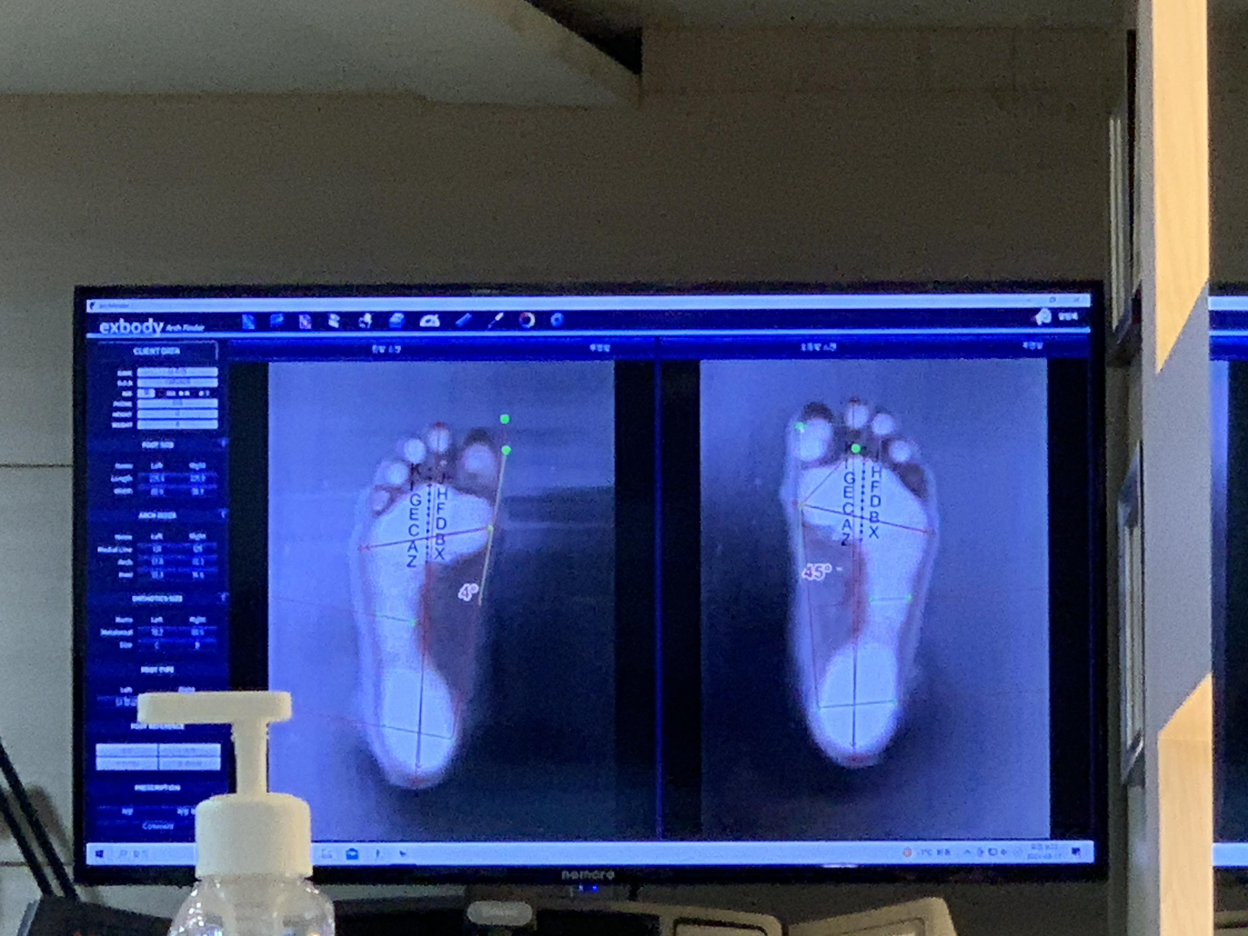 기다리고 있다가 우선 발부터 측정을 합니다.