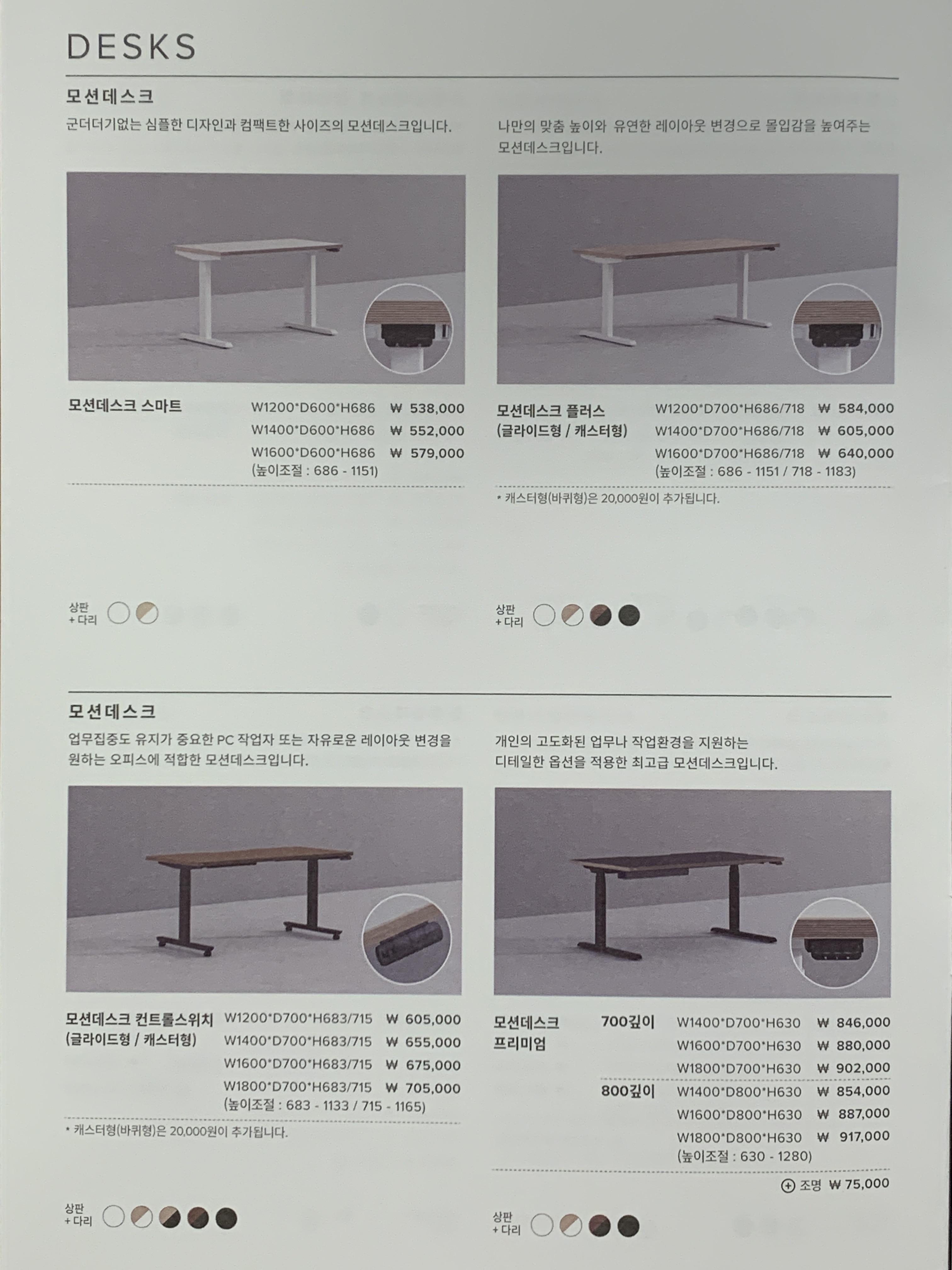 2024년 현재 데스커의 모션데스크는 총 4종류가 있어요.