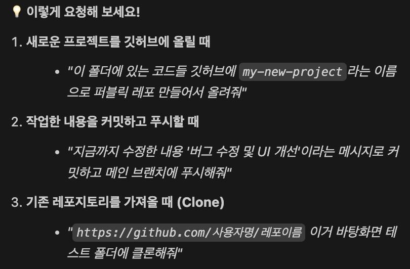 깃허브 연동과 레포지터리 생성을 'Agent'에서 대화형으로 할 수 있다는 점이었습니다.